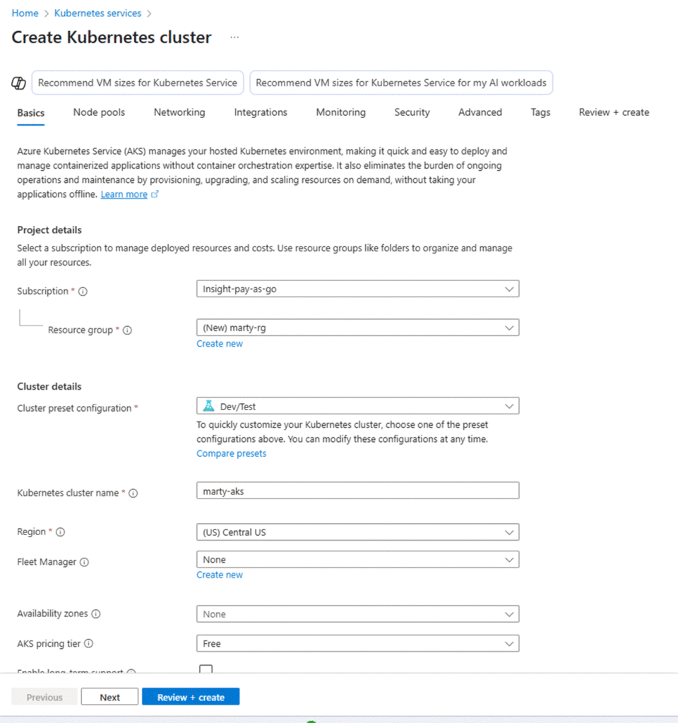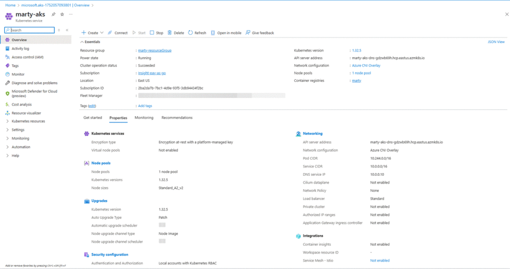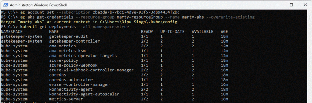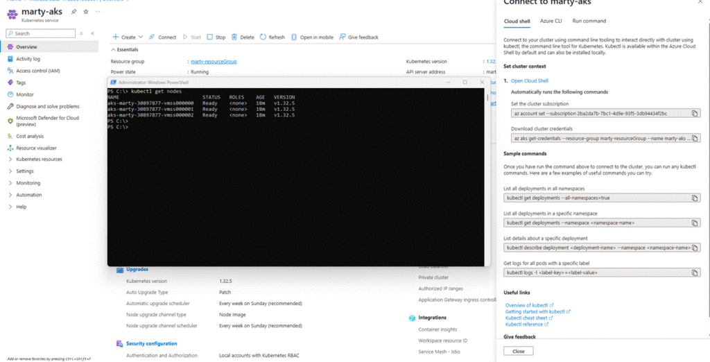 az aks get-credentials –resource-group marty-rg –name marty-aks