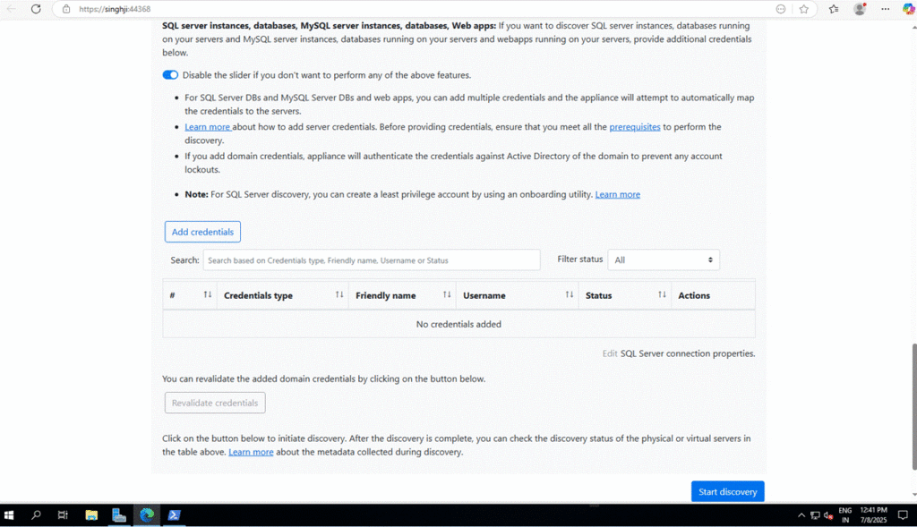 - Wait for Discovery to complete (this may take a few minutes)