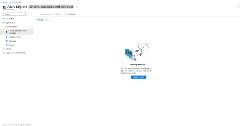 1. Open Azure Portal and Set Up Azure Migrate Project