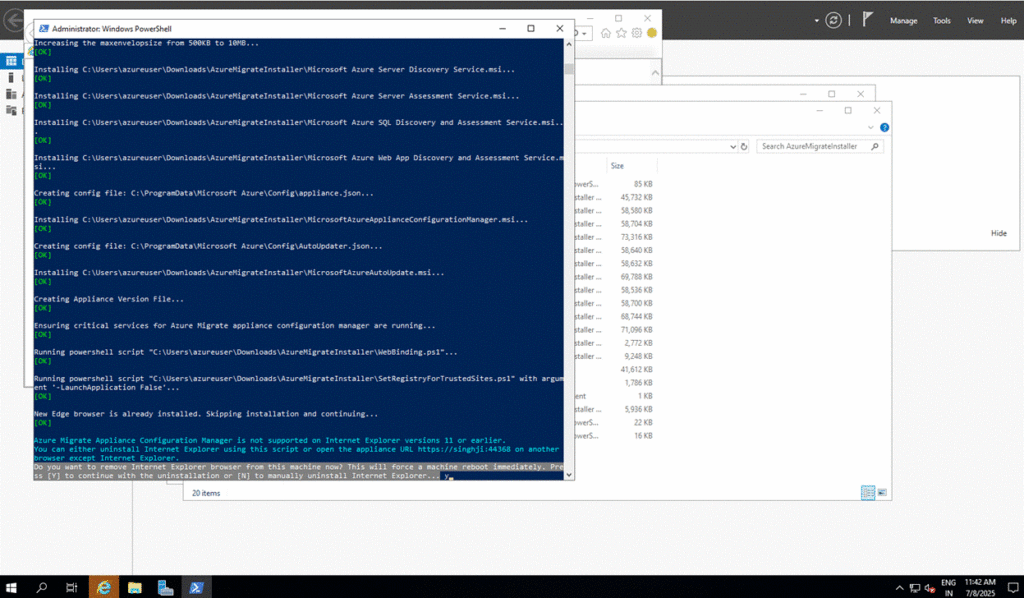 - Run the installer to set up the Azure Migrate Appliance