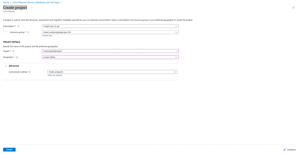 - Create a new migration project: