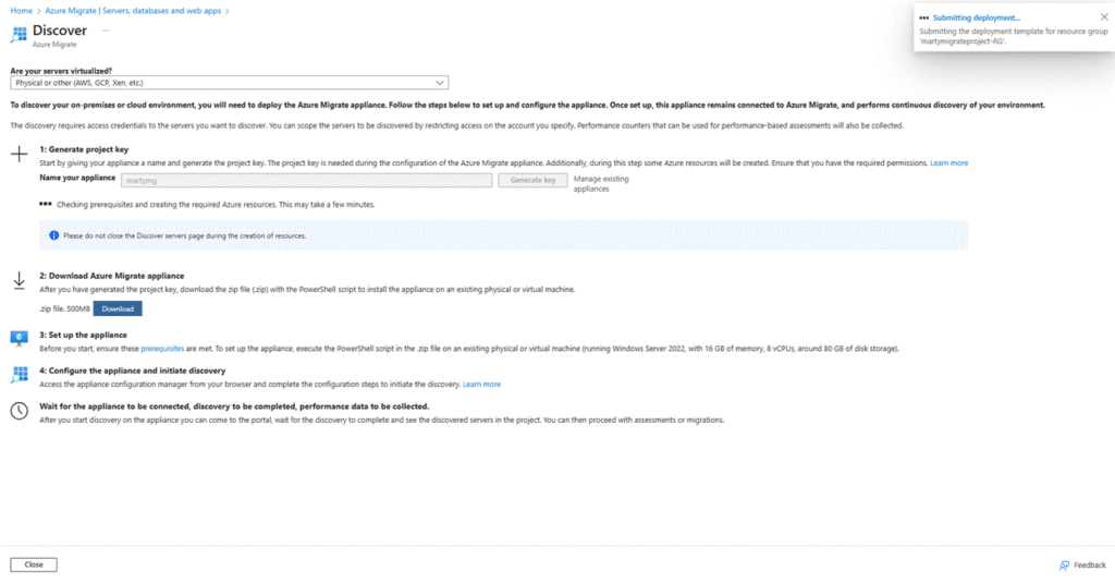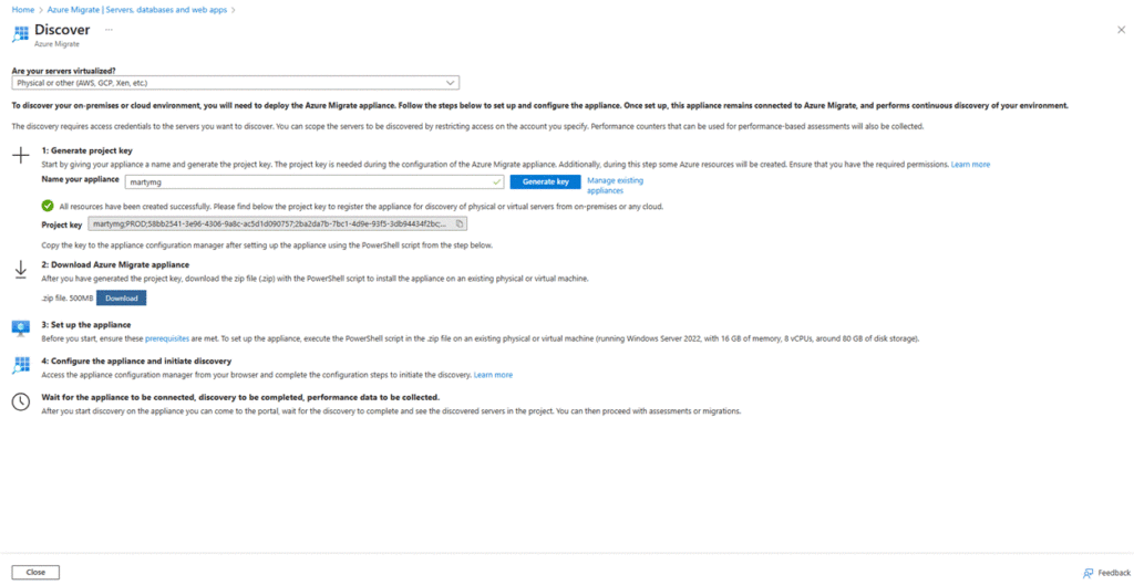 2. Download Azure Migrate Appliance for Physical Servers