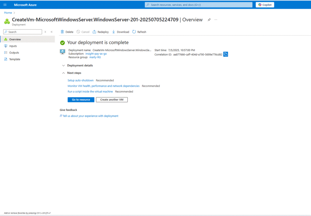 - Go to the new VM’s overview page.