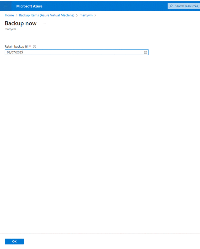 - From the Backup pane of the VM, click Backup now to initiate the first backup manually.