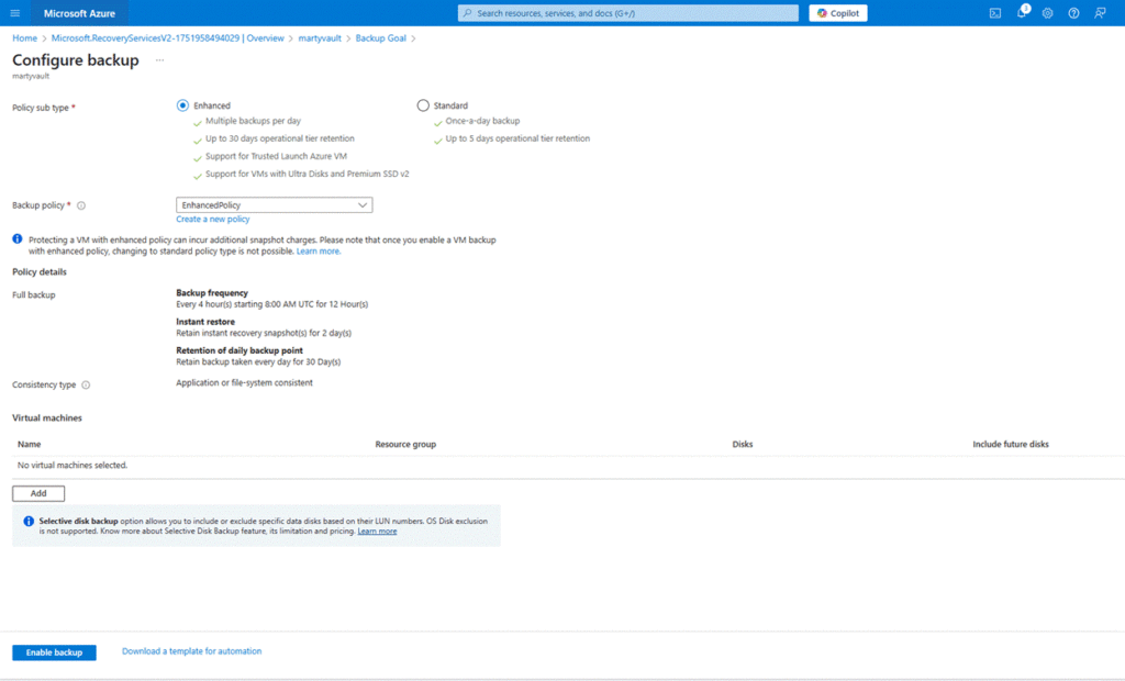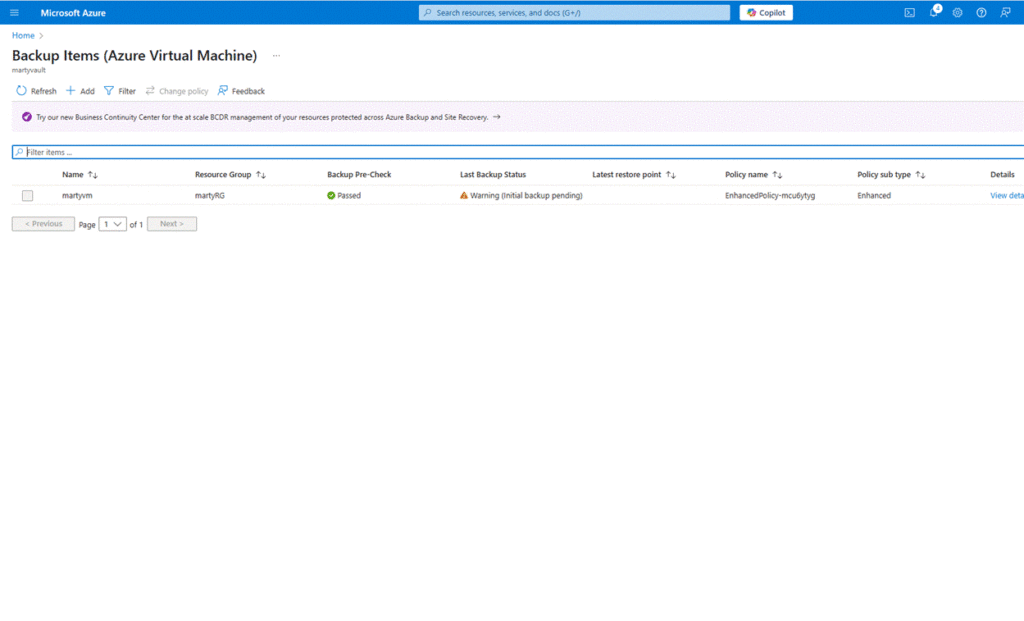 - After creating the policy, return to Backup items > Azure Virtual Machine.