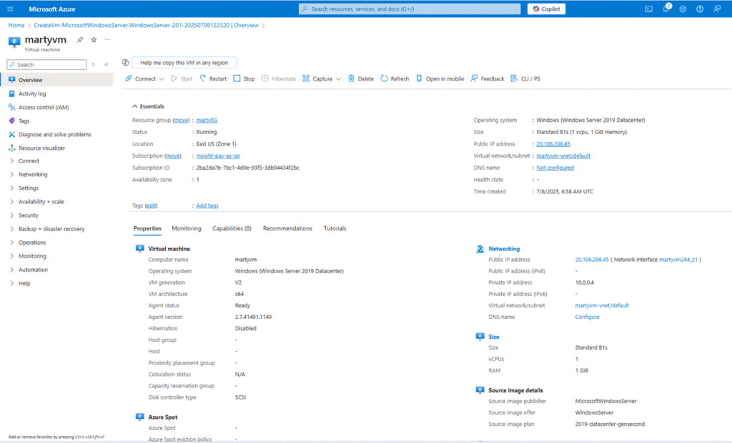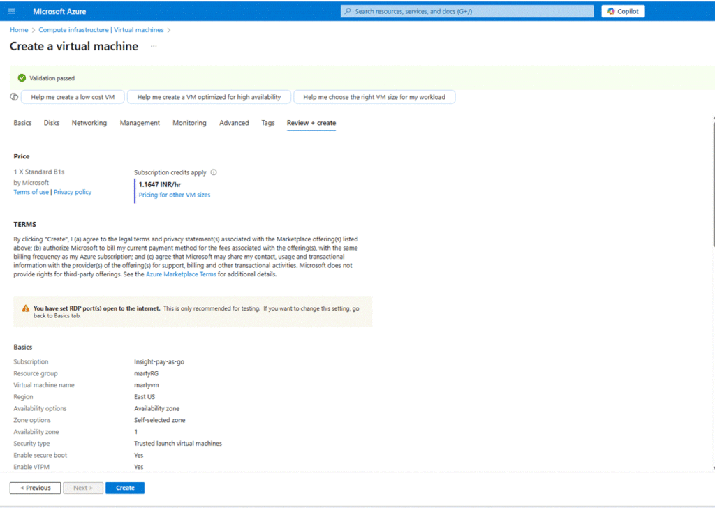 - Provide a name ( martyvault), select the same region as your VM, and place it in the same resource group.